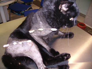 Questo gatto di circa due anni è stato trovato nei pressi di Ariccia (RM). E’ stato investito e lasciato in mezzo alla strada, infatti chi lo ha soccorso ha detto che nessuna macchina si è fermata, si limitavano ad evitarlo mentre il gatto si trascinava a stento, con due sole zampe, verso il margine della strada in cerca di salvezza. Fortunatamente ancora vivo, è stato portato in clinica dove, riscontrate fratture multiple scomposte all’omero e al femore, ha subito un lungo intervento chirurgico nel quale gli sono stati inseriti dei fissatori esterni che permetteranno nuovamente il corretto allineamento dei segmenti ossei. Tra un mese subirà un altro intervento nel quale gli verranno asportati i fissatori esterni. Intanto, le ferite superficiali al muso e al fianco si stanno velocemente rimarginando. Chiunque voglia adottarlo chiami Daniela al 347 71 30 164